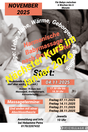 Ein Aufbaukurs mit 1 Theoriestunde, 4 Massagestunden und 1 Theorieabschluss. Die Babys sind gerne auch bei den Theoriestunden dabei